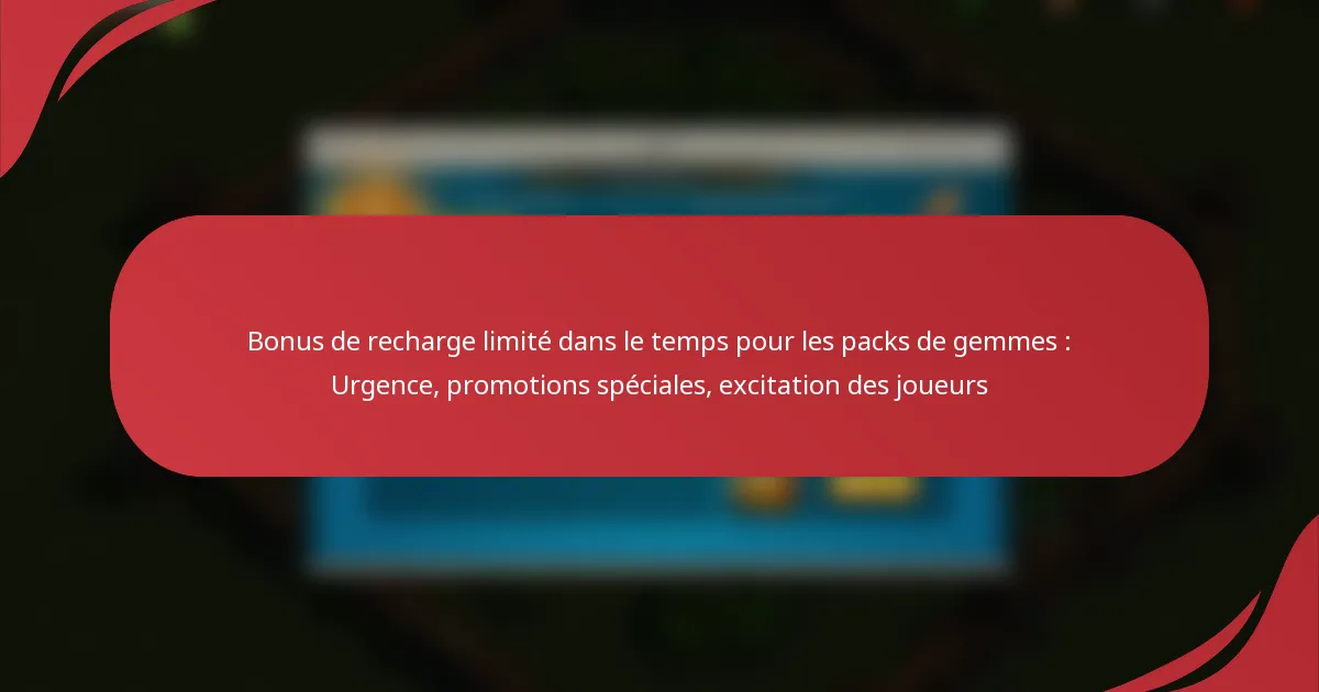 Les bonus de recharge à durée limitée pour les packs de gemmes offrent aux joueurs des récompenses intéressantes lors de l’achat de gemmes dans un délai désigné. Ces promotions non seulement augmentent la valeur de votre achat, mais créent également un sentiment […]