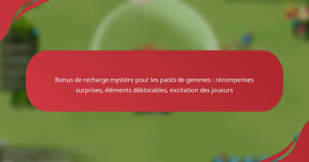 Les bonus de recharge mystères pour les packs de gemmes offrent aux joueurs des récompenses inattendues qui améliorent leur expérience de jeu. Lors de l’achat de gemmes, les joueurs peuvent recevoir des gemmes supplémentaires, des objets exclusifs ou d’autres éléments déblocables, suscitant […]